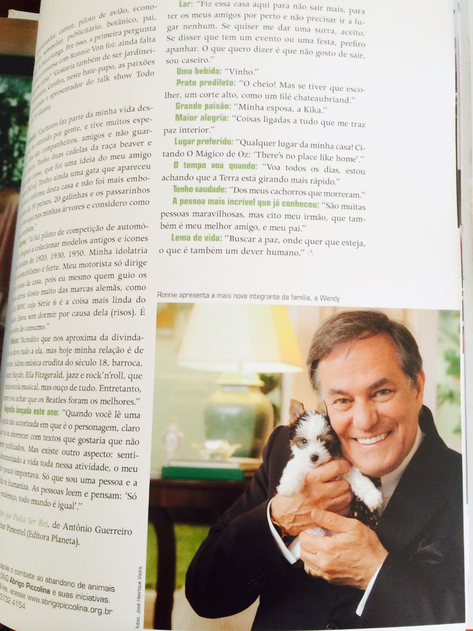 A lindíssima princesinha Wendy (Zaza Dallexx Dreams) , do cantor e apresentador Ronnie Von, apareceu com ele na edição de novembro da revista Auto Star: